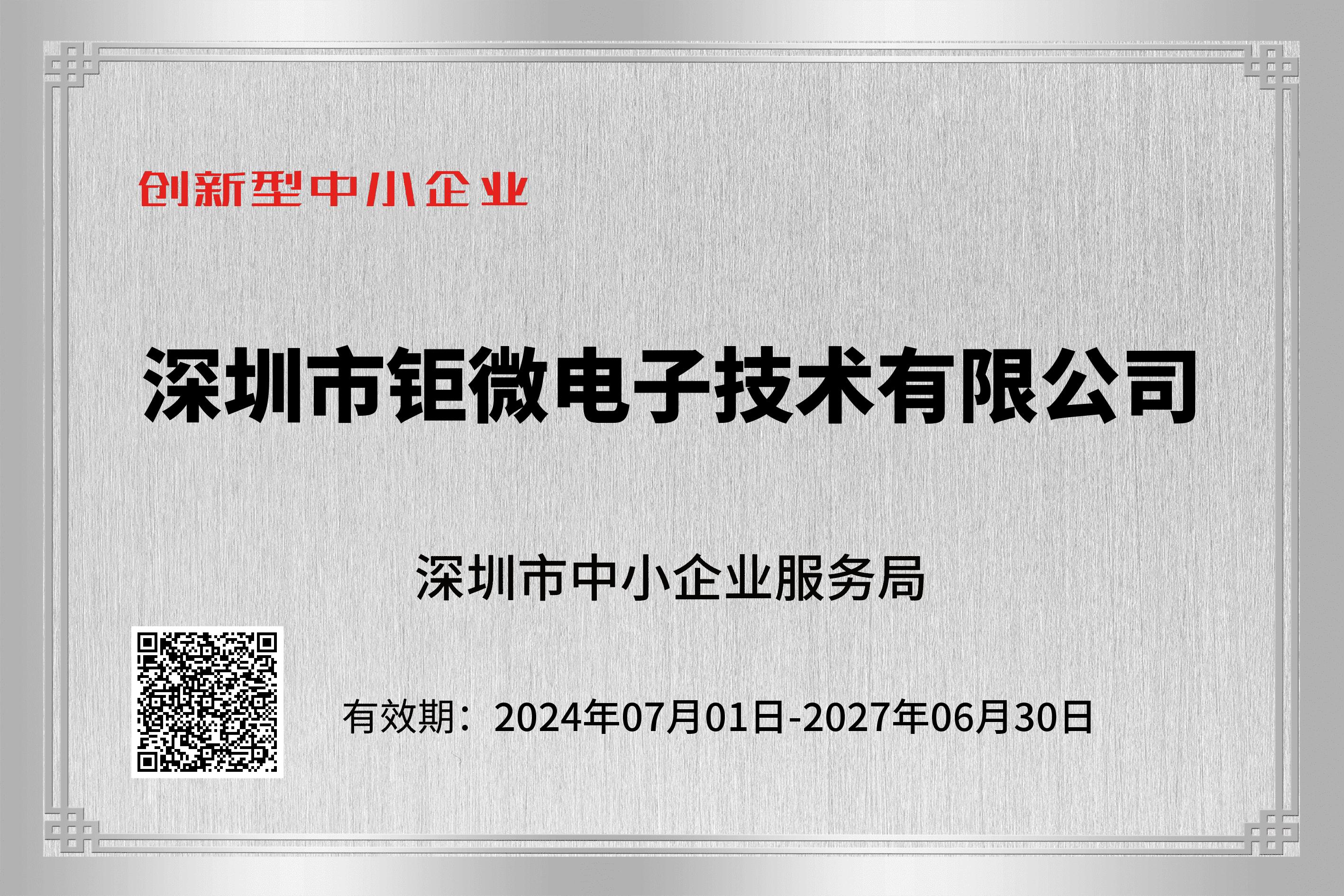 深圳市鉅微電子技術有限公司于2024年7月榮獲深圳市創(chuàng)新型中小企業資質。